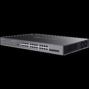 853.00 KMTP-Link SG2428P Omada 28-Port Gigabit Smart Switch with 24-Port PoE+, 24× Gigabit 802.3af/at PoE+ ports and 4× Gigabit SFP slots, 250 W total PoE budget, Omada app, Static Routing, VLAN, ACL, QoS, IGMP Snooping, Zero-Touch Provisioning