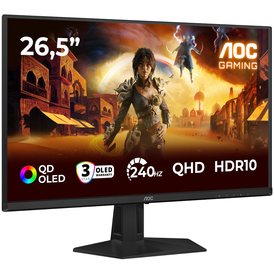 AOC Monitor Gaming OLED Q27G41ZDF 26.5″, QHD (2560×1440), QD-OLED, 240Hz, 0.03ms, 400 cd/m2, Adaptive Sync, G-Sync Compatible, HDR10, USB hub, 1x HDMI 2.0, 1x DP 1.4