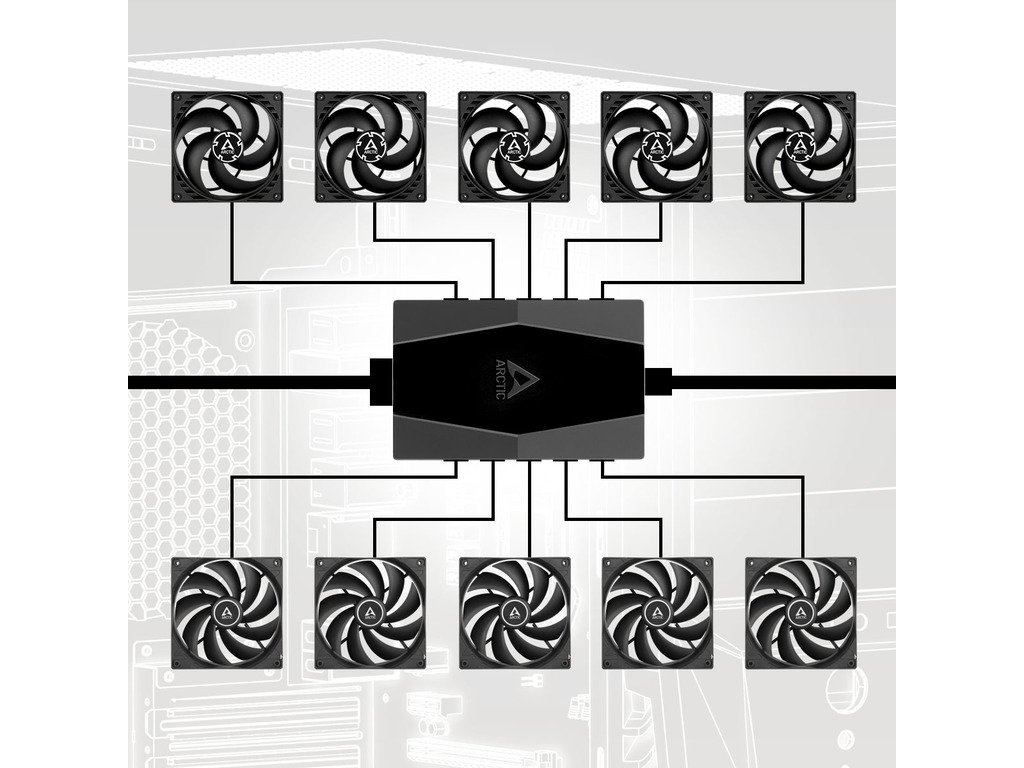 Arctic case fan hub, 10 port PWM fan sa SATA power