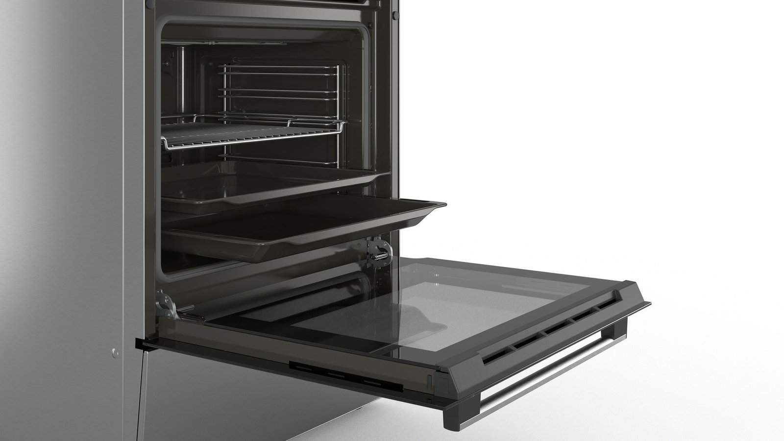 BOSCH električni štednjak/šporet HKA090150 Serie 2| A; INOX; 3D Vrući zrak; 7 načina grijanja; 66 l; 1 dvokružno kolo;Tip utičnice: …. nema utikač (električni priključak obavlja električar