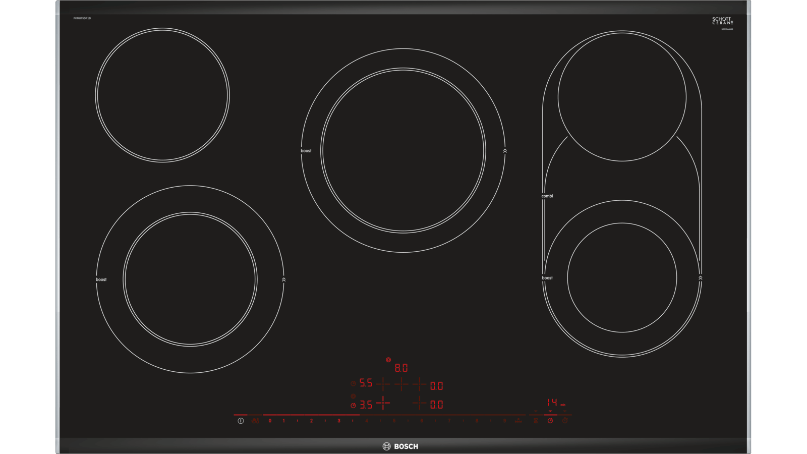 BOSCH Staklokeramička ploča PKM875DP1D Serie 8|; 80 cm; Direct Select-Premium; Bez okvira brušeni rub ukrasna letvica sa strane; 5 HighSpeed polja za kuhanje; Ring zone double, CombiZone; DE