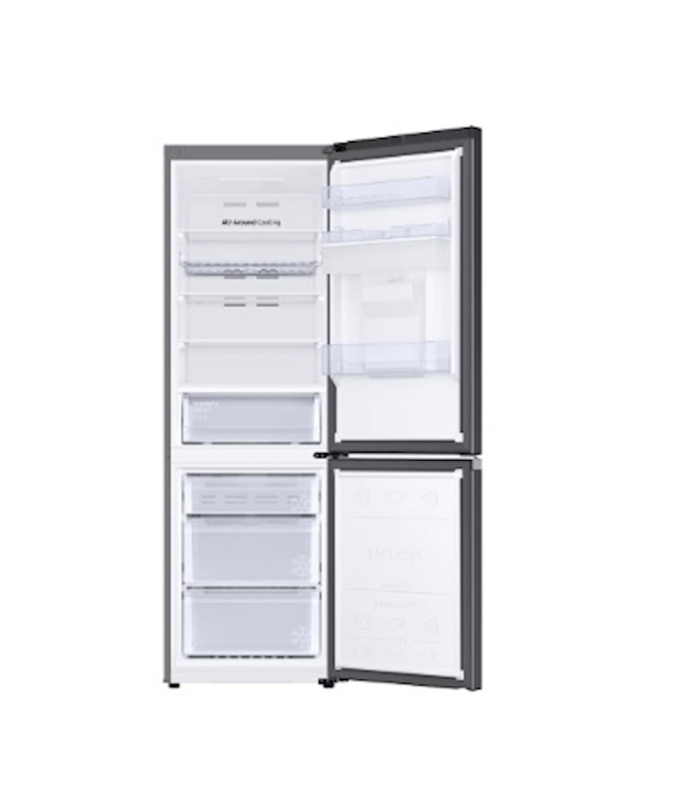 Pohranite više hrane u iznimno velikom 385-litarskom frižideru standardnog dizajna dubine 600 mm, zahvaljujuci cemu ce se s lakocom poravnati s Vašim kuhinjskim ormaricima. Visokoucinkovita izolacija SpaceMax™ tehnologije stijenke hladnjaka cini mnogo tanjima. Stoga stvara više prostora za pohranu bez stršenja izvan Vaše radne površine. Pobrinite se da Vaša hrana bude pravilno hladena – o kojim se god namirnicama radi. Ravnomjerno hladenje ravnomjerno hladi svaki odjeljak iz ugla u ugao. Temperatura se neprestano provjerava, a hladan zrak kruži kroz strateški postavljene otvore. Tako da se svaka namirnica na bilo kojoj polici hladi ucinkovito i ostaje svježija. Ne gubite vrijeme i snagu na odledivanje frižidera. No Frost tehnologija poboljšava kruženje zraka održavajuci temperaturu stalnom, cime se sprjecava nakupljanje leda. Time se i mnogo brže postiže potrebna temperatura. A sistem hladenja može raditi manjim intenzitetom što mu produžuje trajnost. Uživajte u prednostima brzog i ucinkovitog hladenja. Jednim dodirom gumba Power Cool funkcija u unutrašnjost hladnjaka upuhuje vrlo hladan zrak kako bi brzo rashladila Vaše namirnice ili omiljena pica. Dok Power Freeze funkcija u Vaš zamrzivac unosi brz nalet hladnog zraka. To su sjajne funkcije za zamrzavanje ili stezanje zamrznute hrane i stvaranje leda. Svom domu podarite jednostavno elegantan izgled. Njegova uobicajena dubina od 600 mm potpuno ce se poravnati s vašim kuhinjskim ormaricima. Odlikuje se prekrasnim ravnim vratima, s integriranim dozatorom za vodu i Clean Back poklopcem. Minimalisticki dizajnirana unutrašnjost može se pohvaliti skrivenim zaslonom, ravnom policom za vina te sivkastim spremnicima i kutijama za hranu.