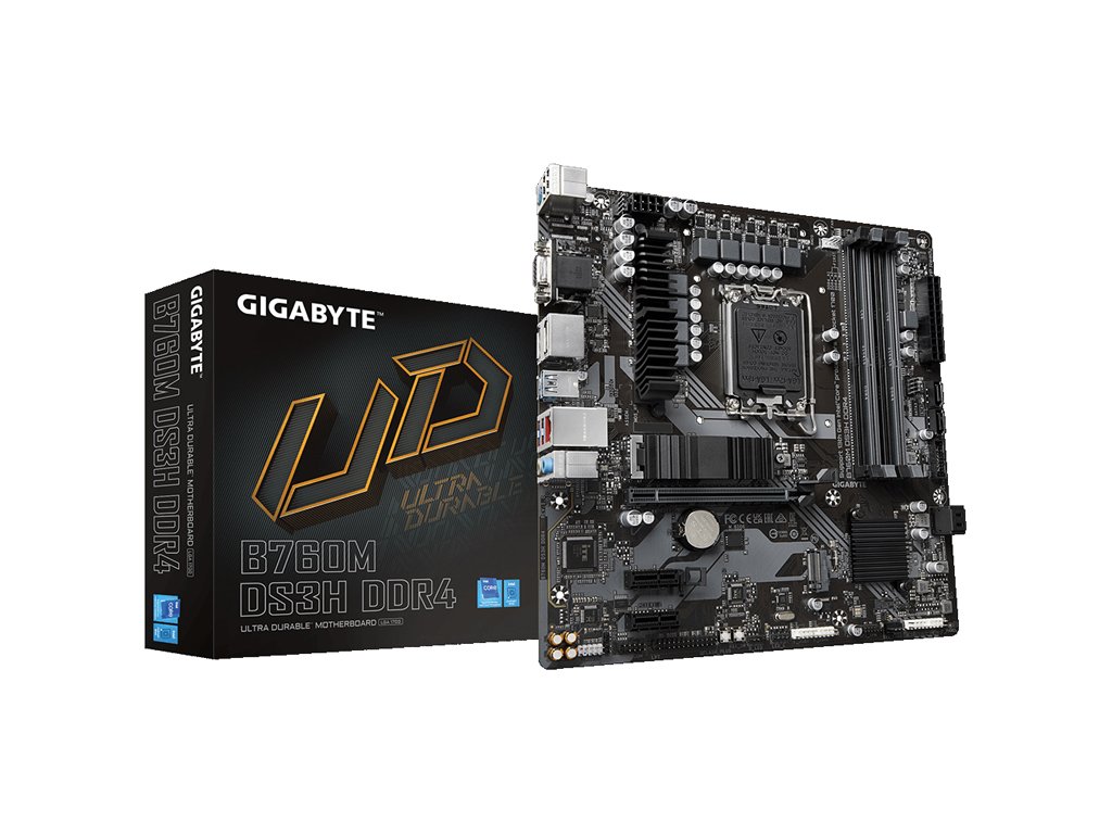 Gigabyte MB [B760M DS3H DDR4 1.0]; LGA1700; 4xDDR4 up to 128GB/5333MHz; 2xM.2; 4xSATA; 6xUSB; HDMI, 2xDP; mATX;