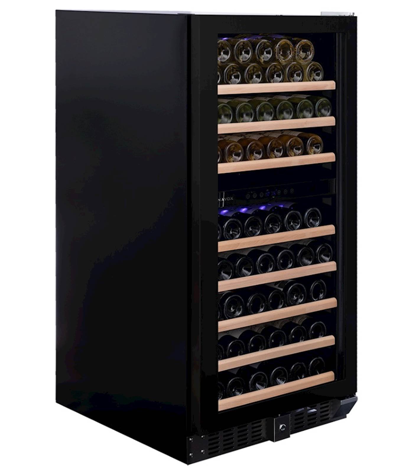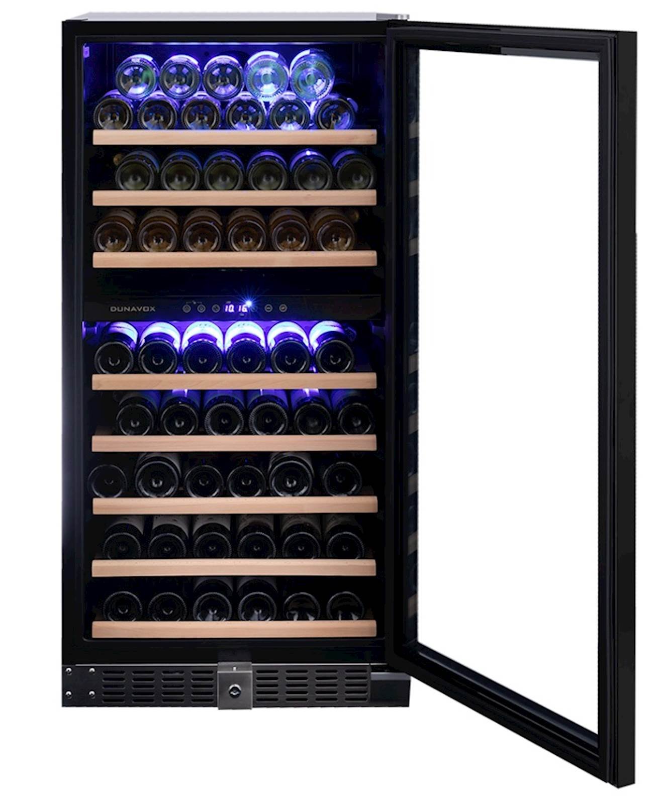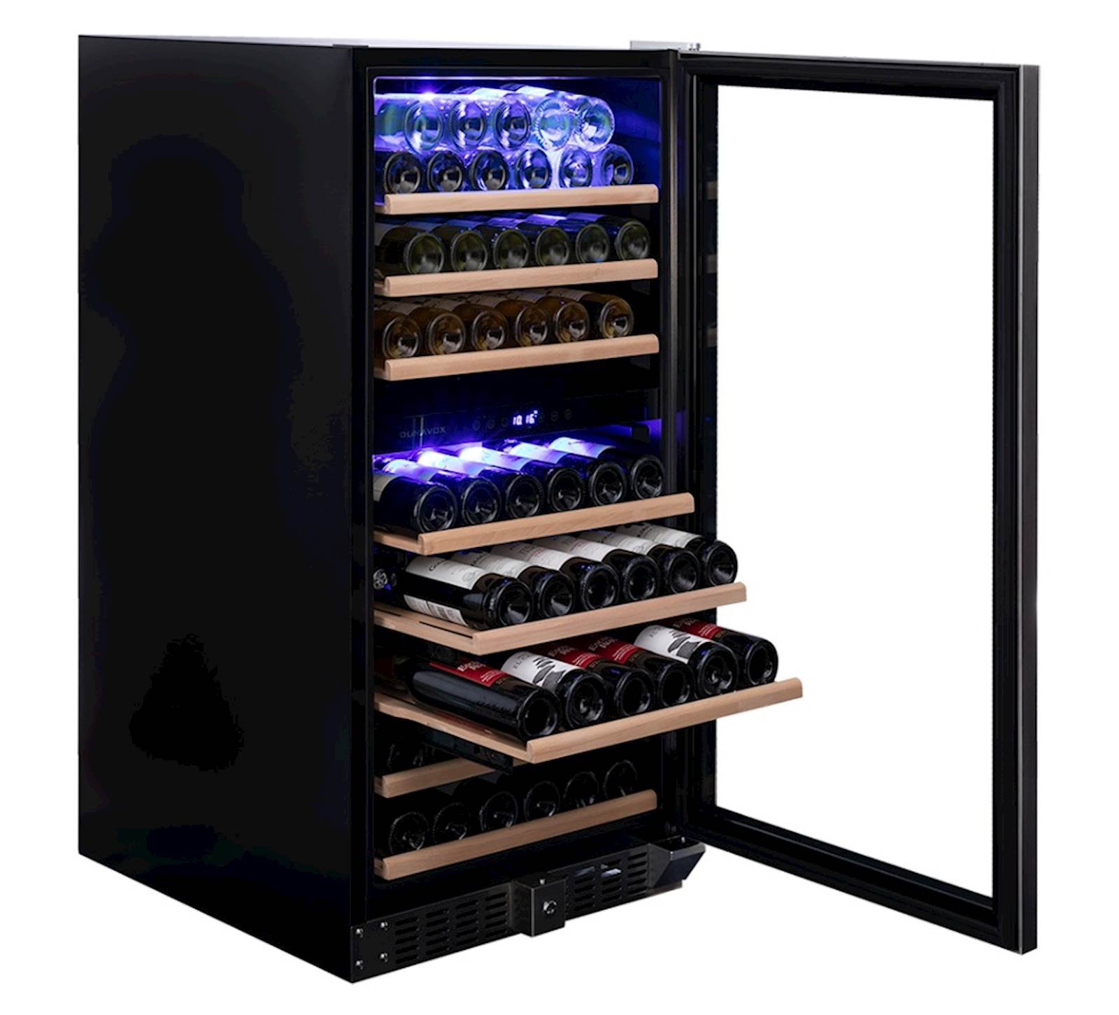 Samostojeci model s dvije zone, 94 boce iz Dunavox Grande linije. Može se pohvaliti elegantnim vanjskim izgledom – model SDSK ima rucku od nehrdajuceg celika, a crna jedinica ima udubljenu rucku. DUNAVOX Grande-94 savršen je za savremene kuhinjske ambijente, a boce su postavljene na cvrste drvene police u prekrasnoj svijetloplavoj unutrašnjosti. Gornja zona mora biti hladnija od donje zone. Ovaj model je prikladan za samostojecu ili ugradbenu upotrebu.
