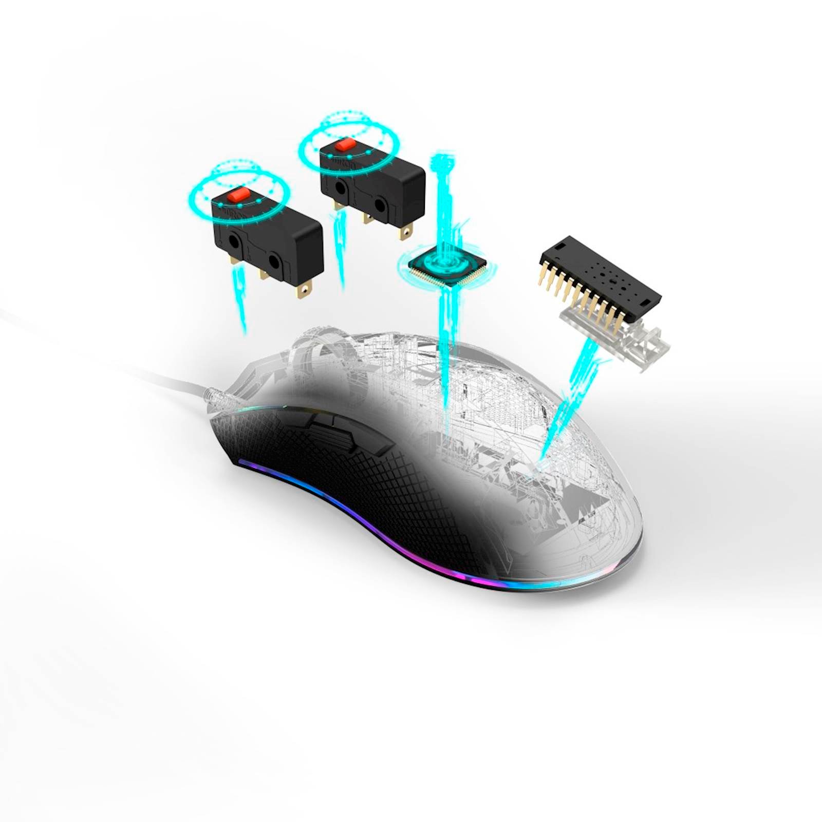 Precizni miš za igre! Podesiva dpi do 10000 za precizno kretanje mišem Podesivo RGB osvetljenje (16,8 miliona boja) Za visoke performanse: integrirani Avago senzor za igre od 10000 dpi dpi dugme za brzo podešavanje brzine miša Jasna LED rezolucija ekrana Fleksibilna tkanina za dodatnu zaštitu od loma Kvalitetni, dugotrajni Omron prekidači Ergonomski dizajn za korištenje do 24 sata dnevno Više prijanjanja zahvaljujući premazu protiv klizanja Teflonske nogice za glatke pokrete po podlozi 8 tipki za brzi odgovor (od kojih se 8 može programirati “u igri”) Uključujući softver za igre (makro programiranje, postavke profila, osvjetljenje itd.) Kabl: 1,8 m 1000 HZ USB brzina miša Plug & Play