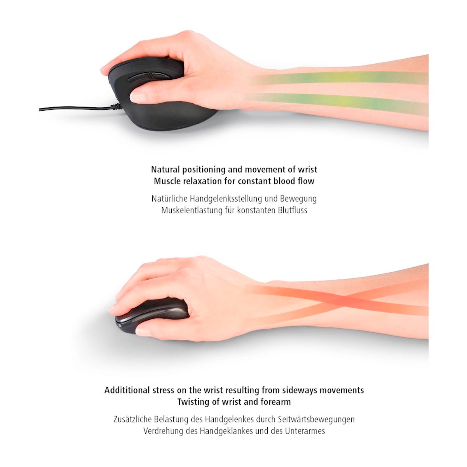 Naš vertikalni, ergonomski miš podržava vas u zauzimanju ergonomski ispravnog držanja ruku i sprjecava prenaprezanje i bolove u ramenima i zglobu.