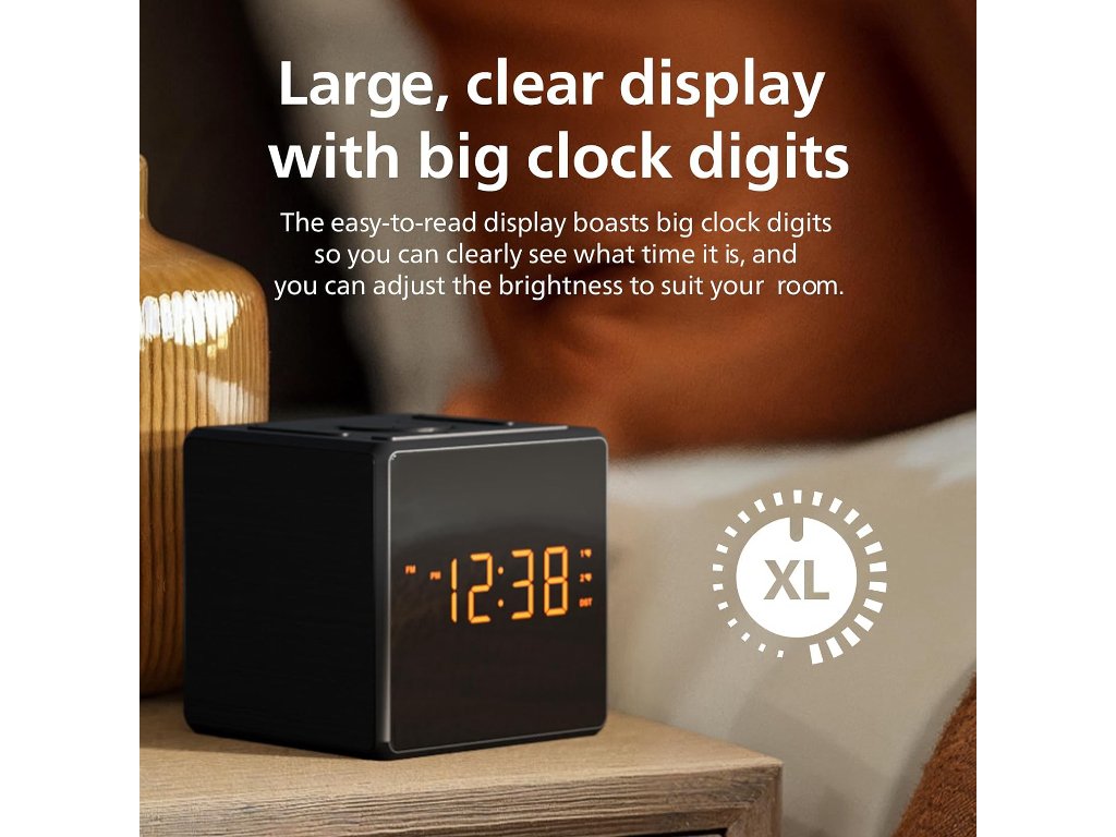 Philips radio sa satom TAR4500; Velik, jasan zaslon; Sustav s dva alarma; FM digitalno podešavanje; Praktični USB-C priključak; boja crna