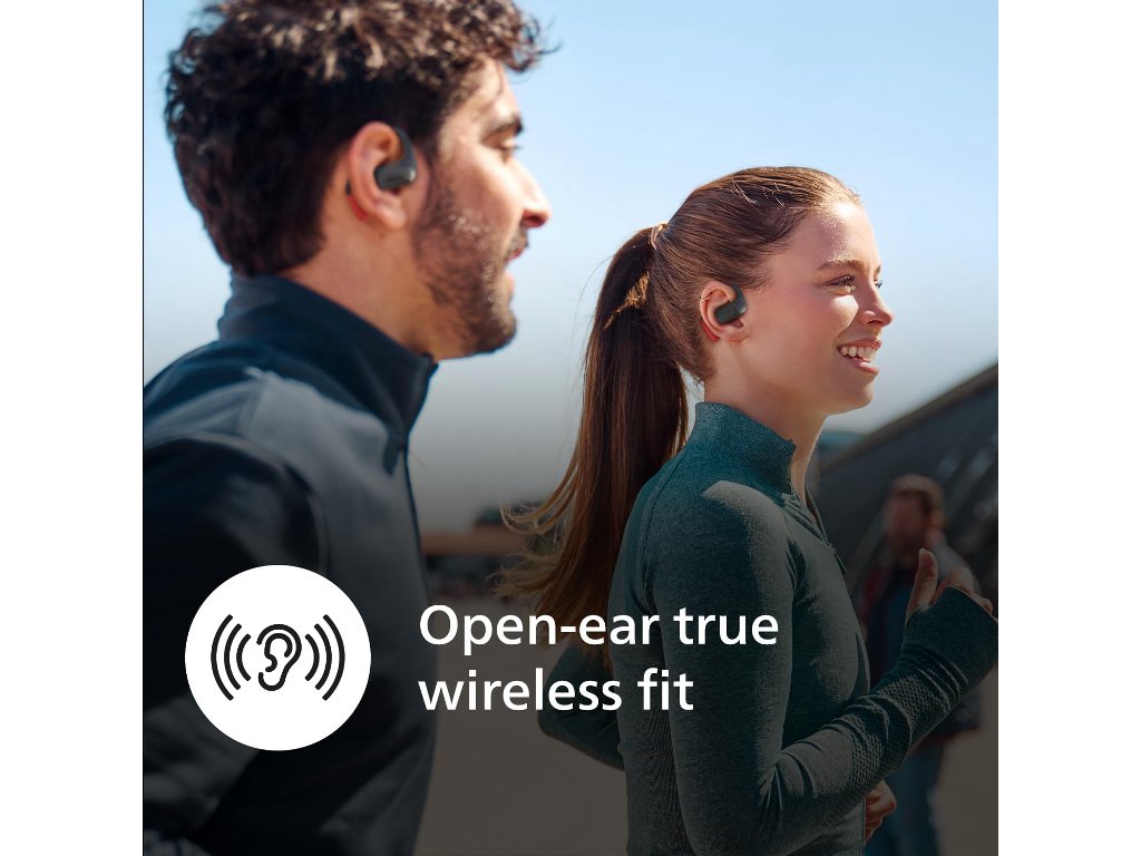 Philips TAA6709BK/00 sportske Bluetooth slušalice otvorenog dizajna, IP55 zaštita od prašine/vode, provodljivost zraka, do 28h reprodukcije, prilagodljive dodirne kontrole na slušalicama, BT veza u više tačaka, jasniji pozivi u pokretu