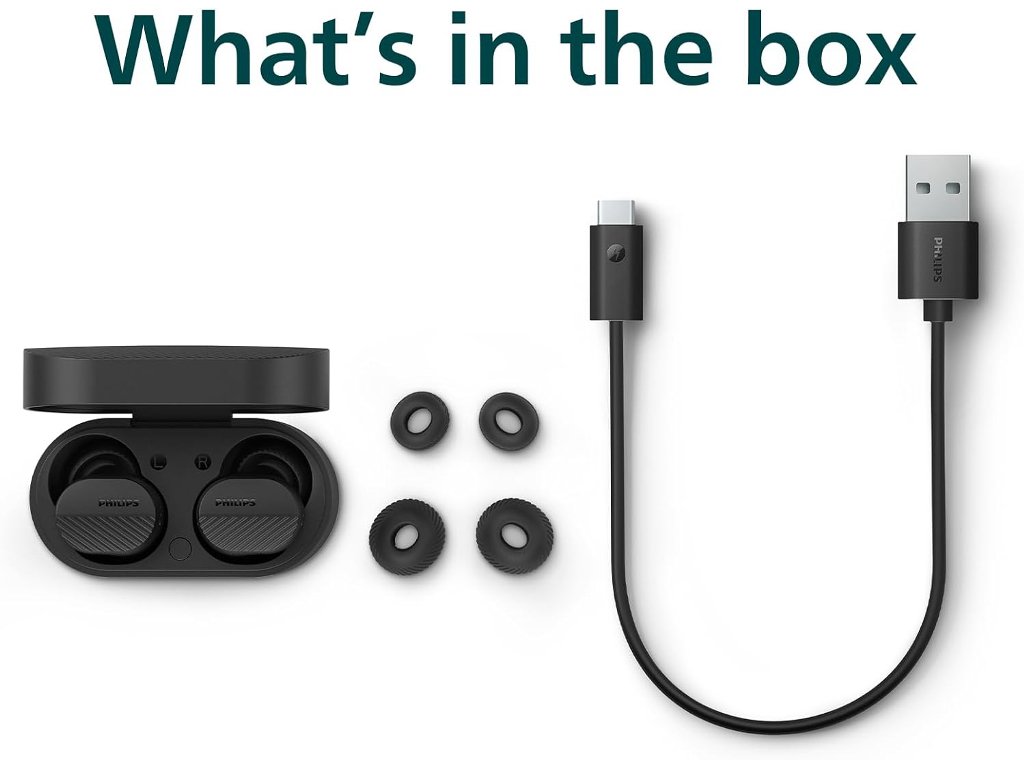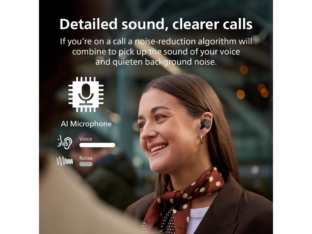 Philips TAT5000BK BT slusalice; Detaljan, prirodni zvuk; Noise Canceling Pro; Tehnologija sa 6 mikrofona; Pouzdano pristajanje u uhu; Do 40 sati reprodukcije; Bluetooth veza s više točaka i lako uparivanje; IPX5 vodootpornost; boja crna