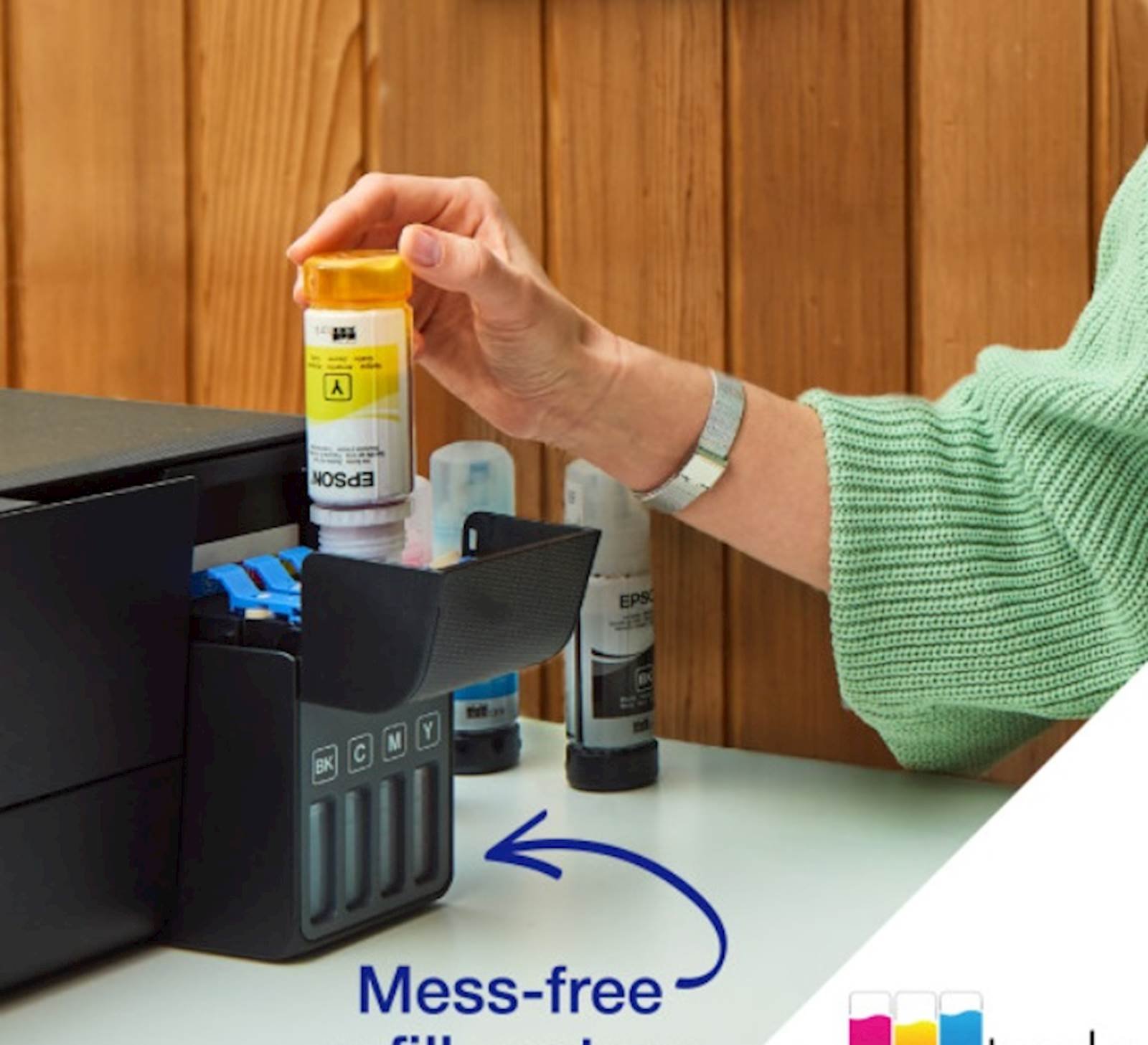 EcoTank omogucava kucno štampanje bez problema – rezervoari sa mastilom ultra velikog kapaciteta omogucavaju dopunjavanje bez nereda, a boce sa kljucem su dizajnirane tako da se može umetnuti samo ispravna boja. Prednji displej nivoa mastila znaci da je lako vidjeti kada je konacno potrebno dopuniti. Uz Micro Piezo tehnologiju bez zagrijavanja možete uživati ??u smanjenoj potrošnji energije i manjoj potrebi za zamjenskim dijelovima. Glava za štampanje takode dolazi unapred instalirana tako da podešavanje vašeg štampaca prolazi bez problema.
