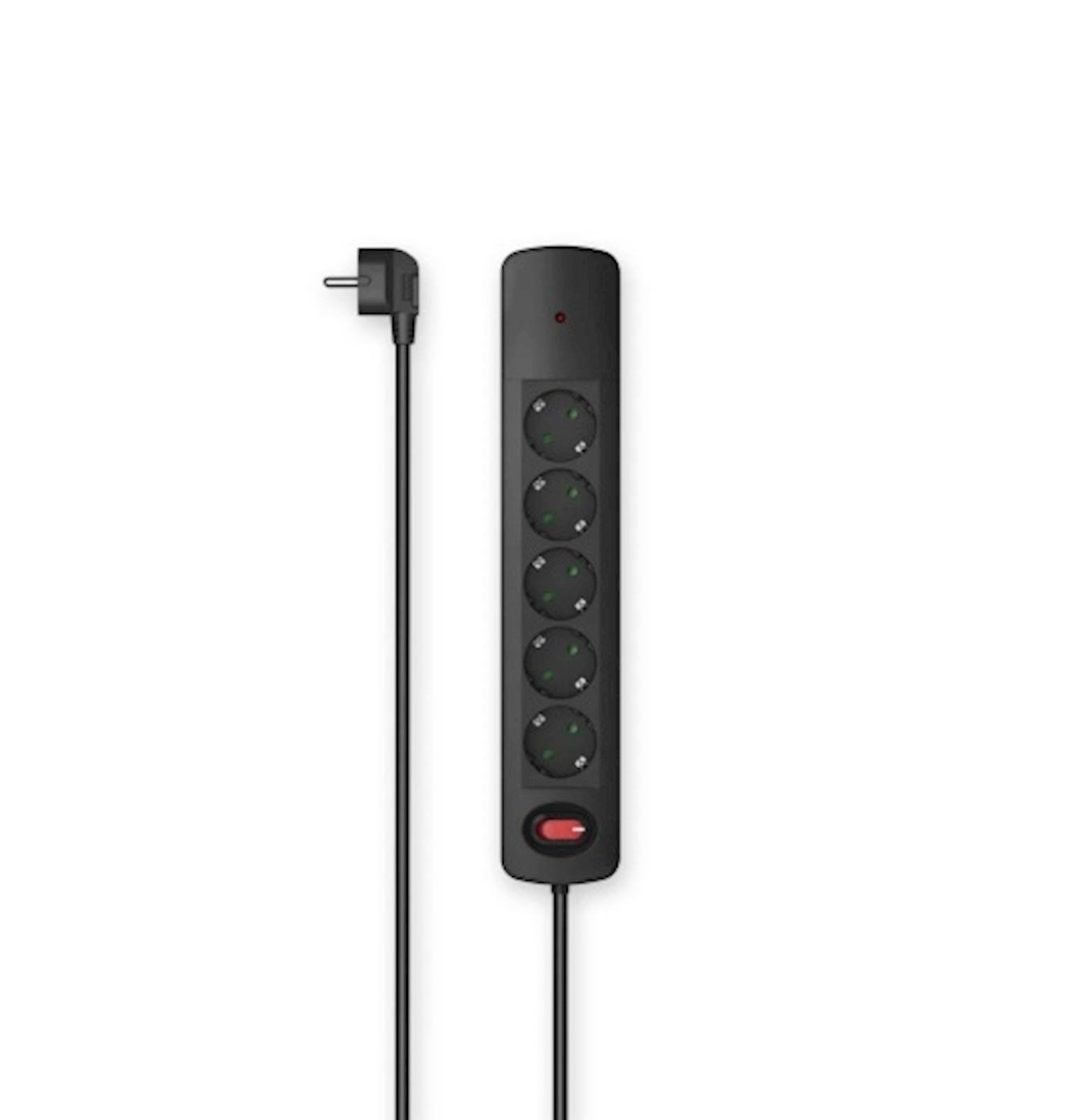 Produžni prenaponski kabal HAMA 5 utičnica 1.5m, prenaponski, sa prekidačem, crni