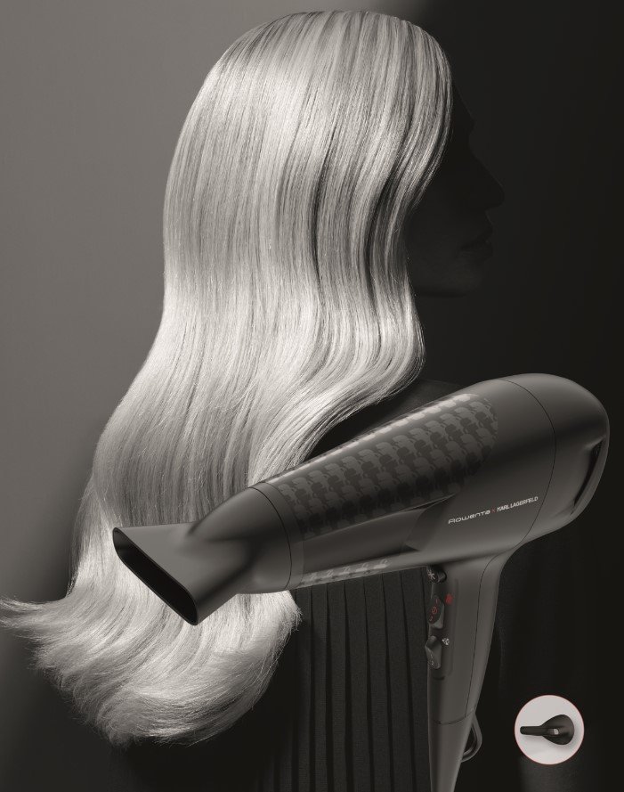 Rowenta Karl Lagerfeld CV581LF0 fen za kosu.Snaga 2300W.Thermo Control funkcija štiti kosu od suvišne topline.Lako podesiva kontrola brizine i temperature sa tankim koncetratorom za stilizovanje najsitnijih detalja.