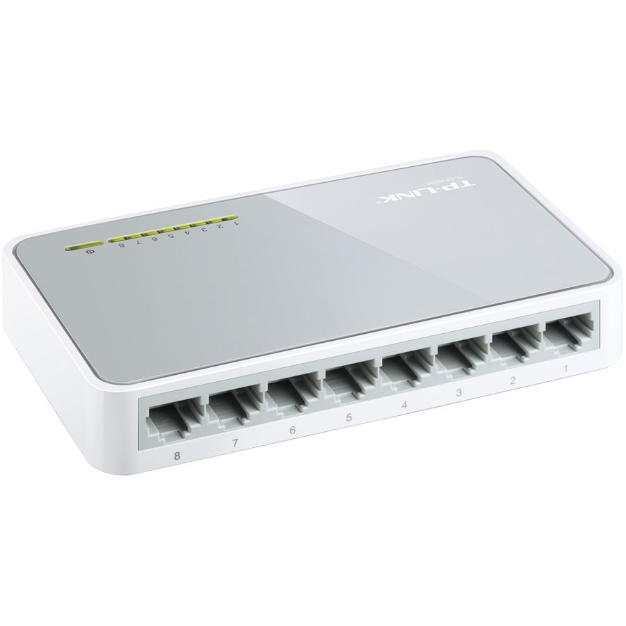 Switch TP-Link TL-SF1008D, 8-Port RJ45 10/100Mbps desktop switch, Fanless, LED indicator, Auto Negotiation/Auto MDI/MDIX, Plastic case