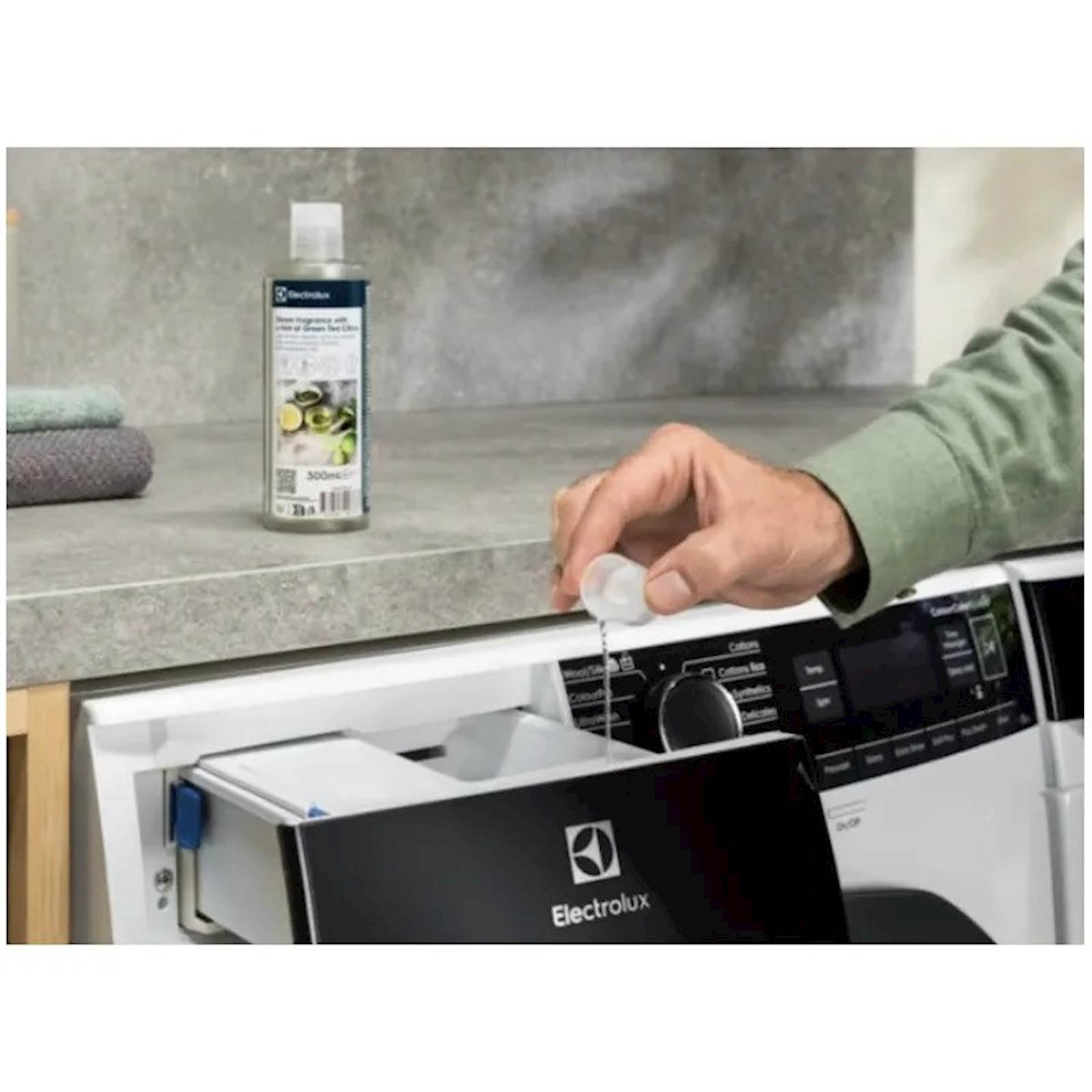 Naparite i osvježite svoju odjecu s daškom zelenog caja i citrusa. Odjecu ne morate pustiti kroz puni program pranja ako je samo želite brzo osvježiti. Parnom programu dodajte miris pare i uživajte u svježoj odjeci s blagim mirisom zelenog caja i citrusa. Kuhajte na pari umjesto pranja i uštedite do 96% vode. Samo 2 litre vode se koriste po ciklusu kada kuhate na pari umjesto pranja. Ponovno uživajte u svježe opranom osjecaju dodavanjem mirisa na paru s prizvukom zelenog caja i citrusa – bolje za vašu odjecu, bolje za okoliš.