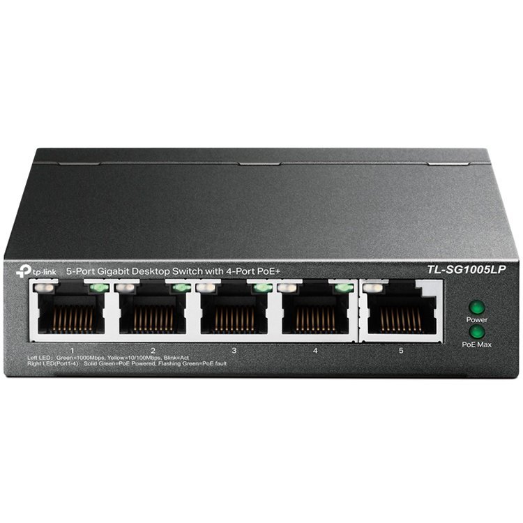 TP-Link TL-SG1005LP 5-Port Gigabit Unmanaged Switch with 4-Port PoE+, 802.3af/at PoE+, PoE budget 40W, 802.1p/DSCP QoS for Traffic Prioritization, Intelligent Power Management, IGMP Snooping, durable metal casing, desktop mount