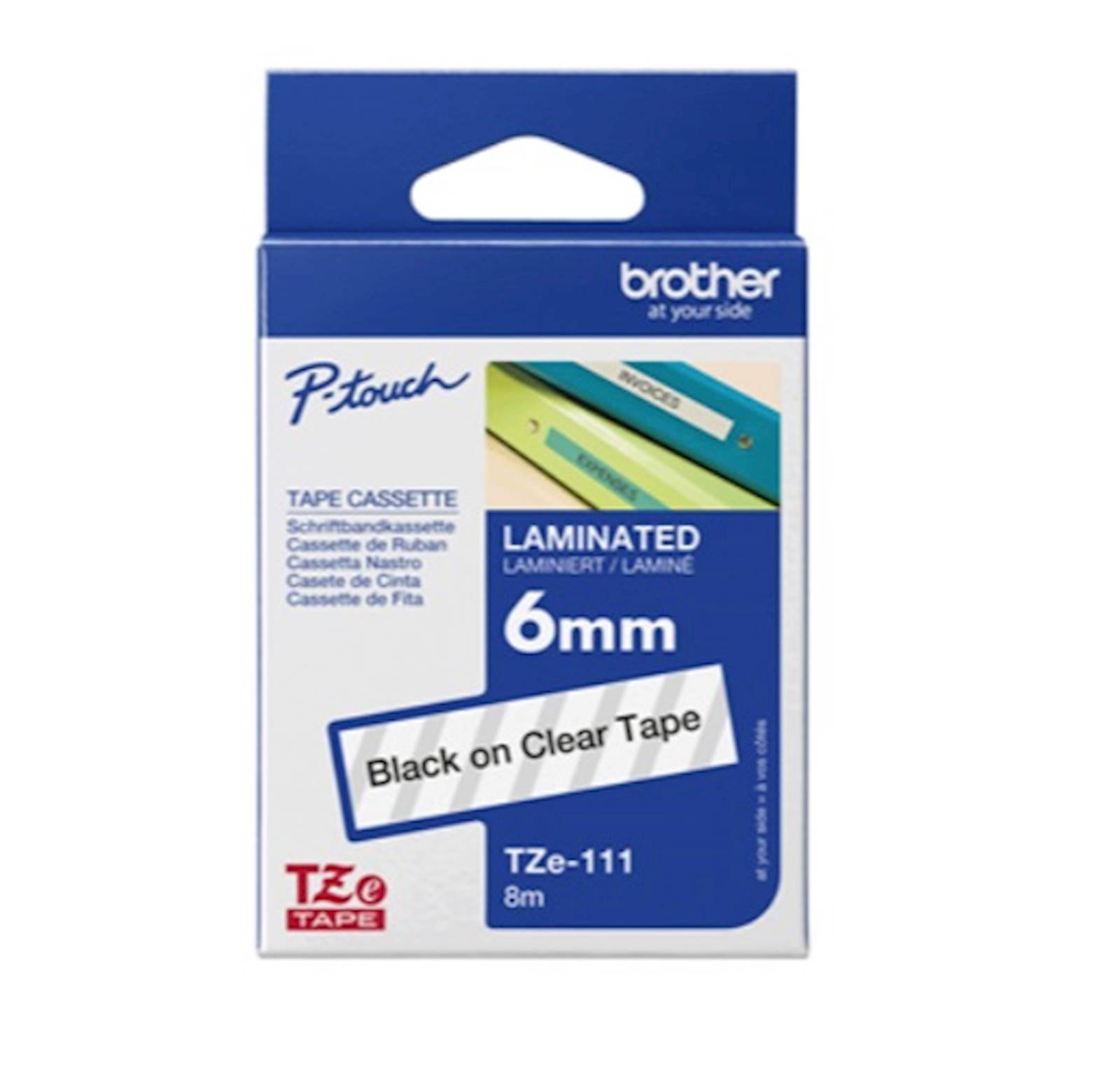 Kompatibilna s velikim brojem Brotherovih P-touch pisaca, TZe-111 originalna kaseta s laminiranom trakom za oznacavanje vrlo je svestrana zahvaljujuci lako citljivoj kombinaciji crne i žute boje – korisna je u kuci, u uredu i na drugim radnim mjestima. Širina – 6 mm.
