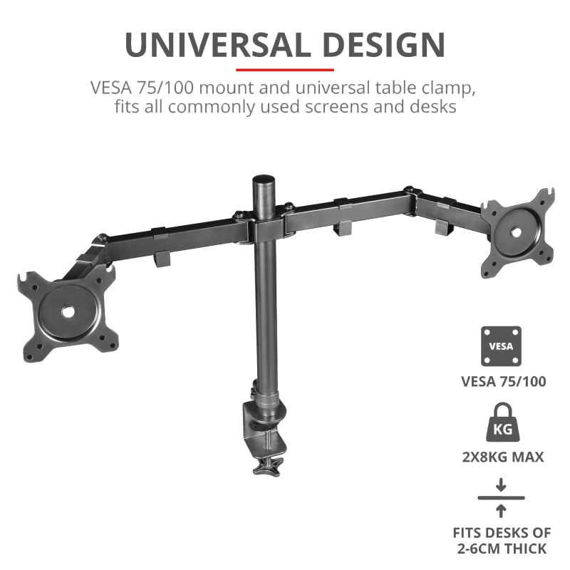 Trust GXT 1120 MARA dual nosač monitora, stolni, za maksimalnu fleksibilnost i upotpunjen gaming doživljaj.