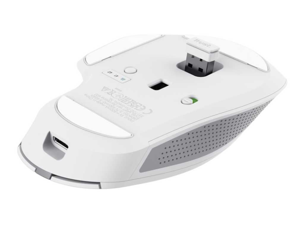 Trust OZAA+ WRLS punjivi miš bijeli. Domet 10m, USB-C konektor. Optički miš, Max DPI 3200