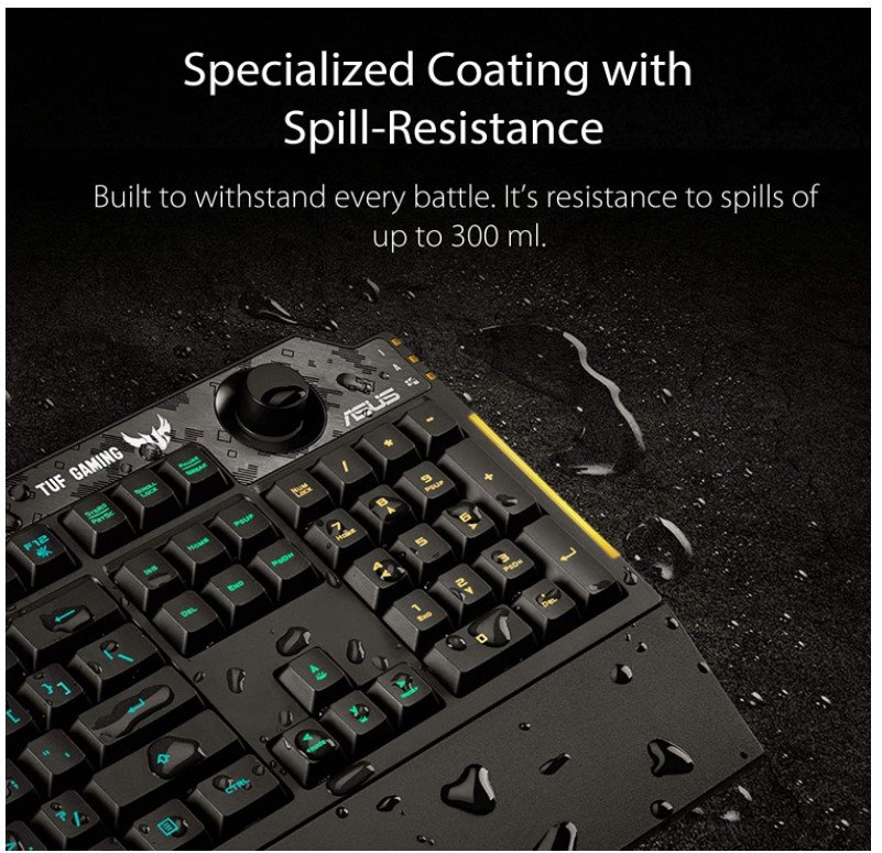 ASUS keyboard TUF Gaming K1, RGB, spill-resistance, dedicated volume knob, side light bar and Armoury Crate, US layout