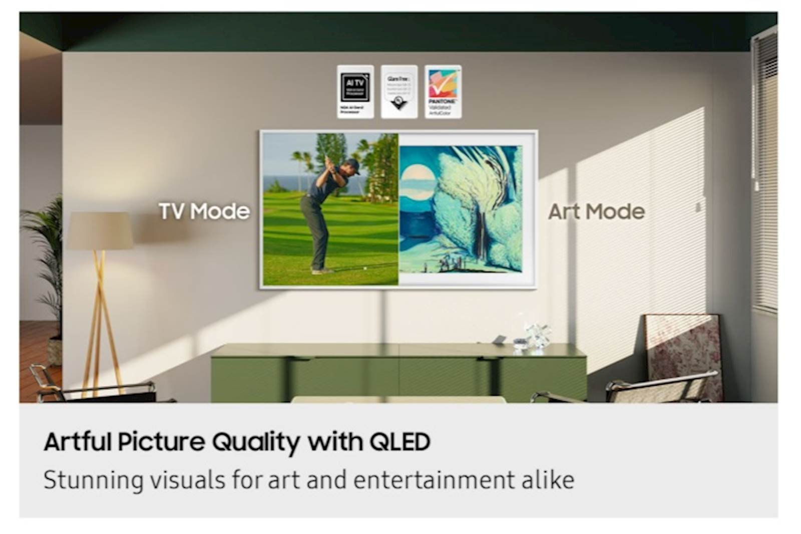 Predstavljamo Samsung The Frame 55″ LS03F, televizor koji se savršeno uklapa u vaš životni prostor. Kada se ne koristi, ovaj QLED zaslon od 139 cm (55 inca) pretvara se u zapanjujuce umjetnicko djelo, prikazujuci odabrana umjetnicka djela, osobne fotografije ili cak prilagodljive teksture u Art nacinu rada. Kada ga ukljucite, bit cete zadivljeni vrhunskom 4K rezolucijom i spektakularnom paletom boja koju omogucuje quantum dot tehnologija. S Quantum 4K procesorom i HDR10+ podrškom, uživat cete u izuzetno oštrim slikama s dubokim crnim tonovima i svijetlim svjetlima. S ultra tankim dizajnom, izmjenjivim okvirima za personalizaciju i inovativnim One Connect Boxom za uredno upravljanje kabelima, The Frame je savršena kombinacija napredne tehnologije i estetske sofisticiranosti.