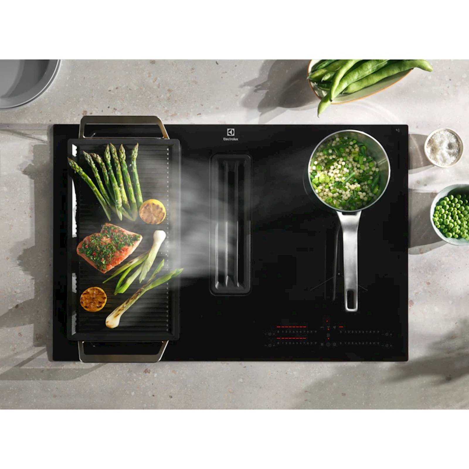 600 Bridge ploca za kuhanje s napom je indukcijska ploca za kuhanje sa snažnom ugradenom ekstrakcijom za vecu slobodu pri planiranju pripreme jela. Istodobno, funkcija povezivanja omogucuje kombiniranje 2 zona kuhanja u jednu veliku zonu za kuhinjsko posude, kao što je roštilj-tava.